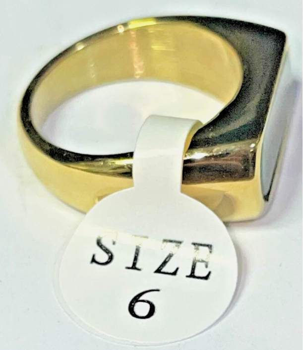 This stylish ring features a modern geometric design with a vibrant colorful inlay, set within a durable stainless steel band with an 18K gold-plated finish. The ring offers a unique combination of bold design and colorful detail. Perfect for adding a touch of contemporary flair to any outfit.