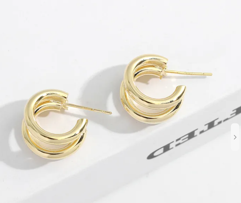Add a touch of modern elegance to your jewelry collection with these Gold Tone Triple Hoop Stud Earrings!